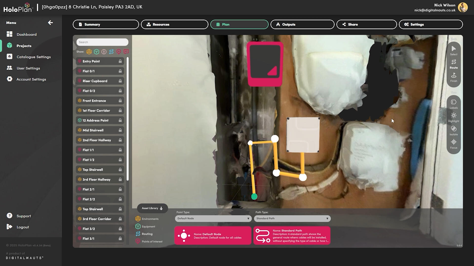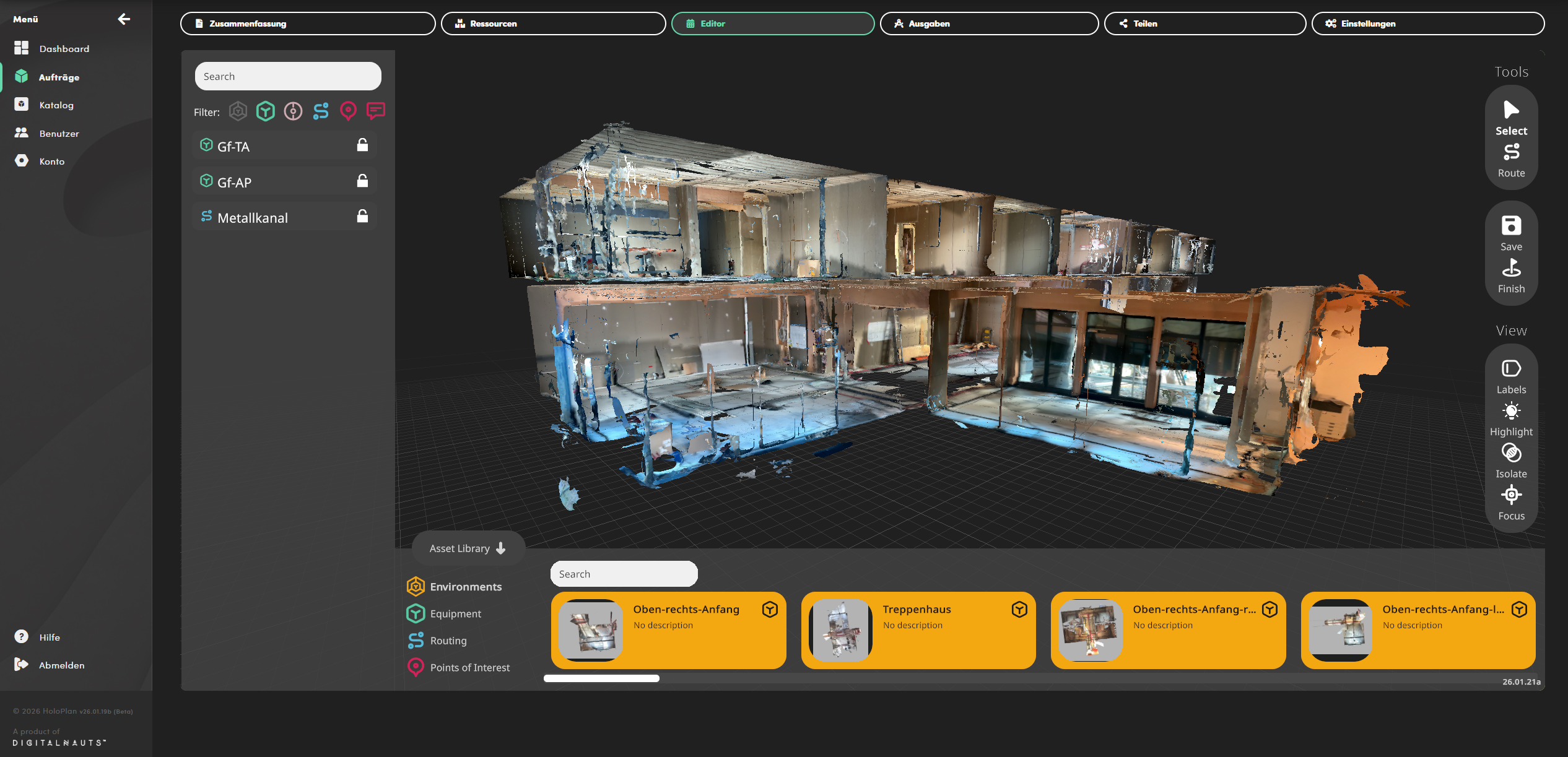 LiDAR-gestützter Scan des Gebäudes inkl. paralleler Planung des Verlegewegs